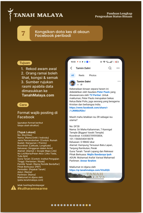 Diterbitkan oleh Tanah Malaya, e-book ini adalah panduan praktikal langkah demi langkah untuk orang awam — supaya anda boleh menjadi mata dan telinga negara dalam membanteras binaan haram secara sah, berfakta, dan berasaskan data.